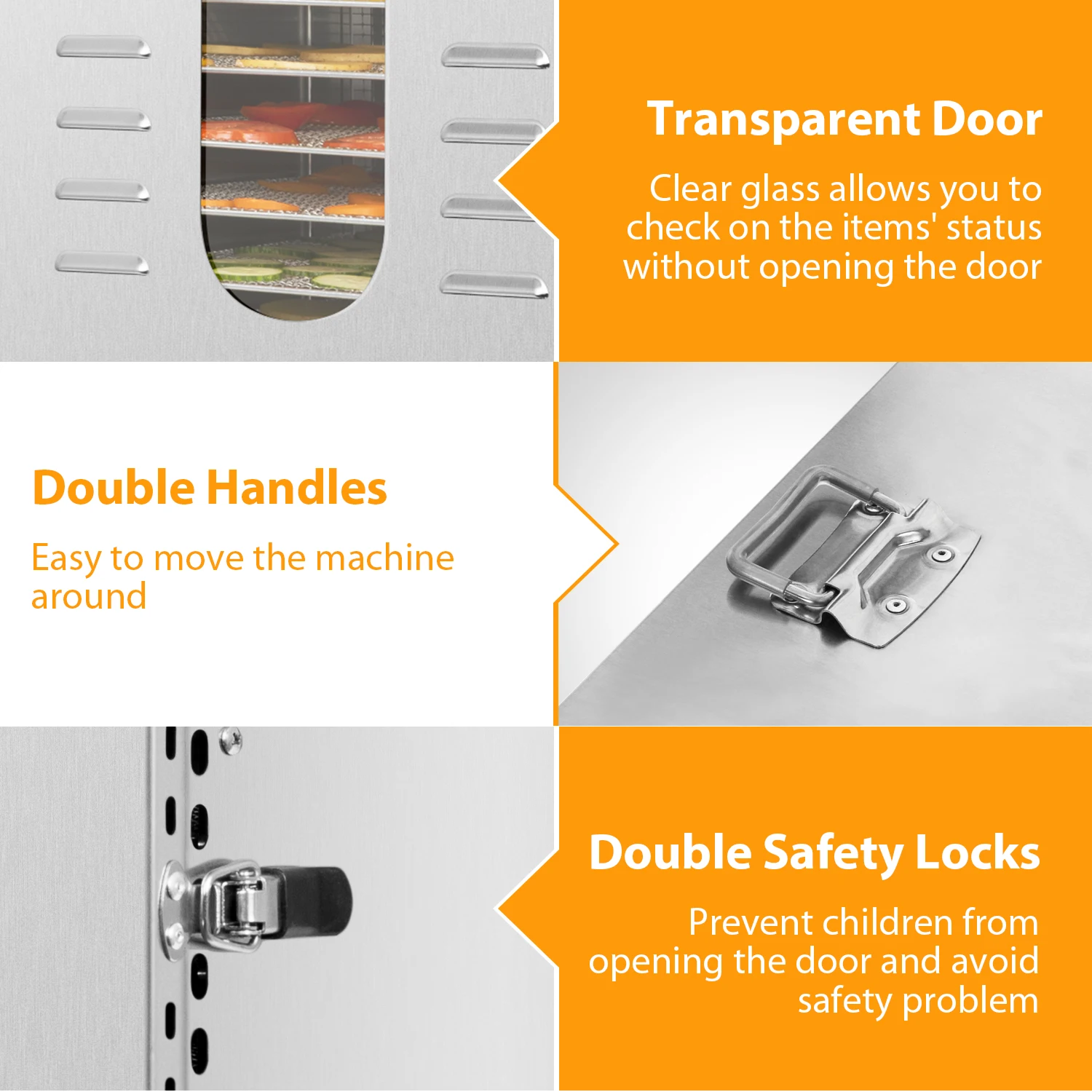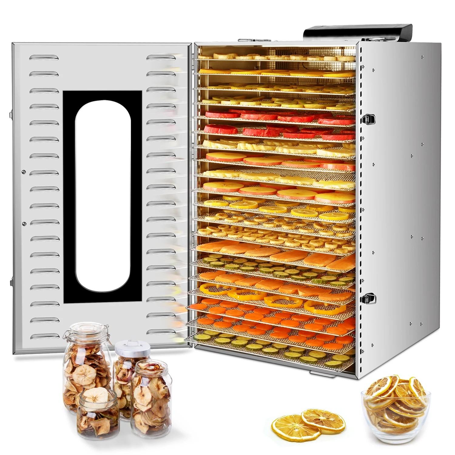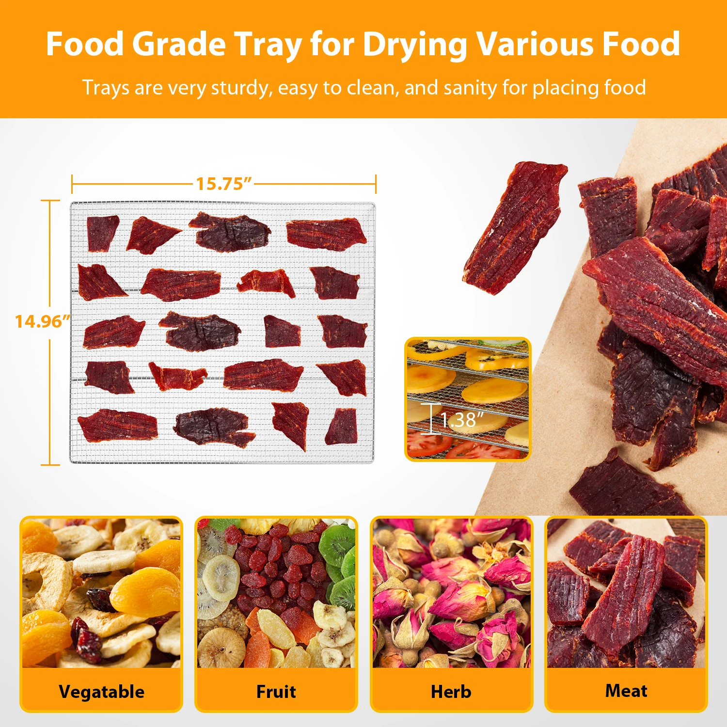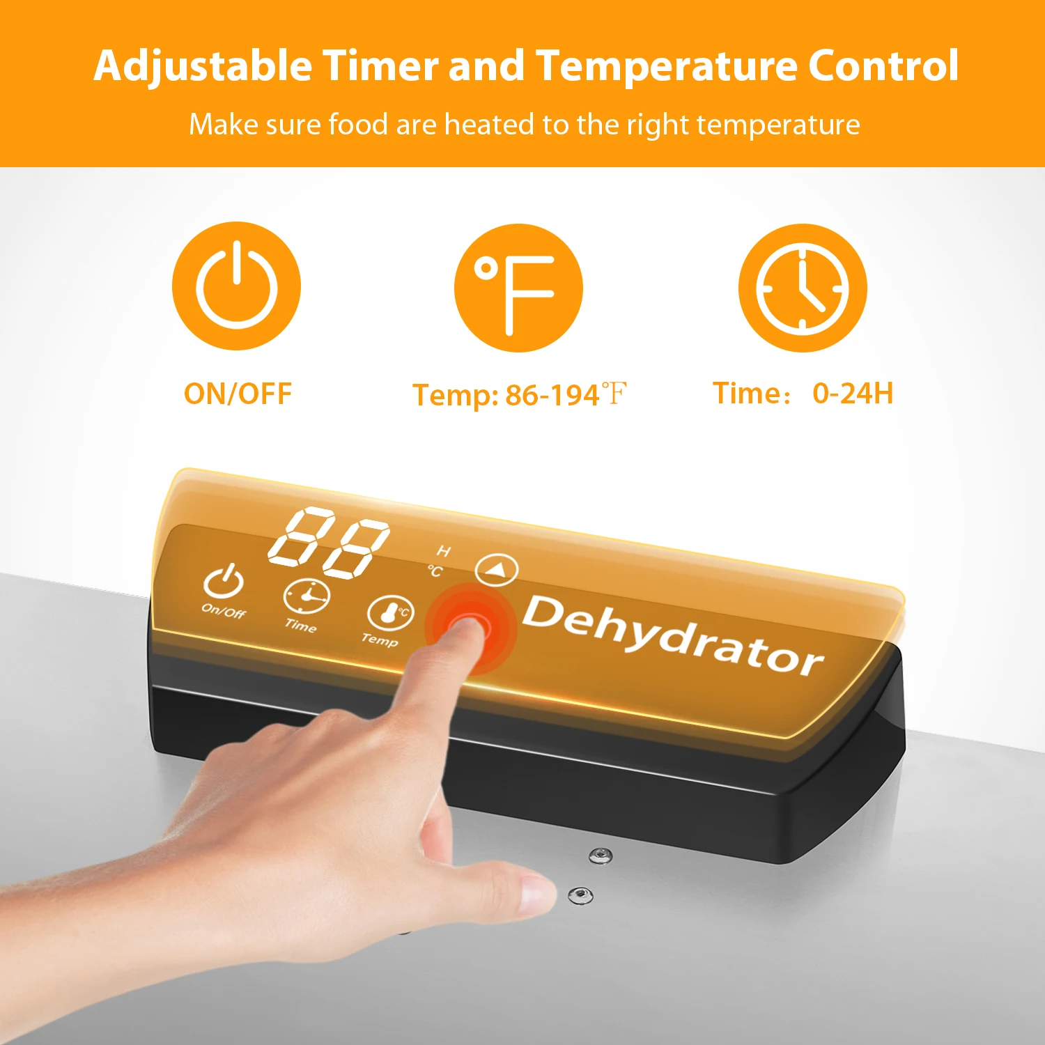Commercial Grade Food Dehydrator Machine 110V 1500W Stainless Steel 20 Trays Capacity Touch Control LED Display 24H Timer Dryer